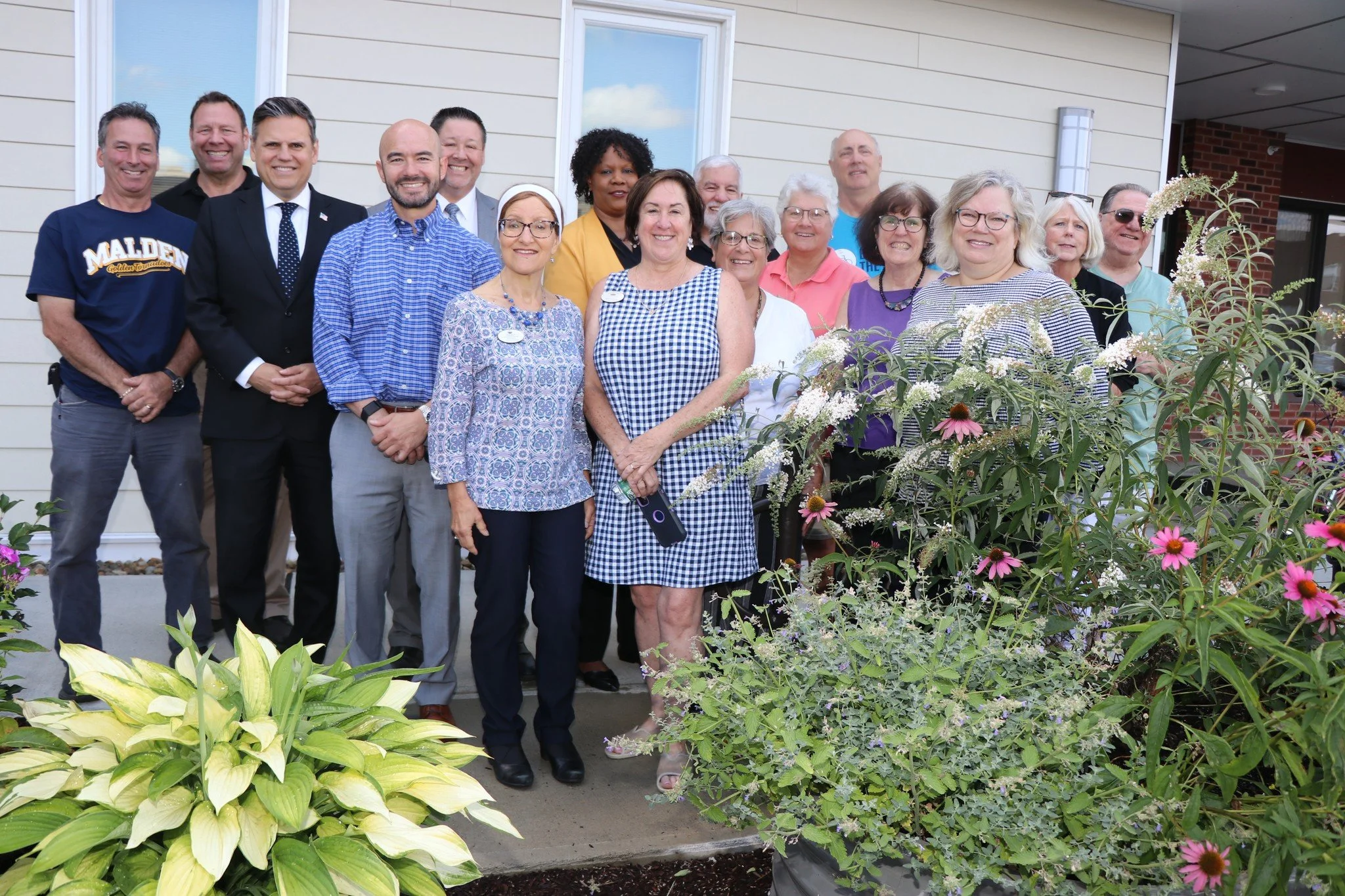 Shown from left to right: Frank Kelly, Robert Santo of Garrick-Santo Landscape Co, Malden Mayor Gary Christenson, Salem Five Malden Branch Manager Robert Green, Eagle Bank Community Reinvestment Officer Christopher DiBenedetto, BOL Executive Director Gabriella Snyder Stelmack, East Cambridge Savings Bank Assistant Vice President Fiona Nattabi, BOL Development Director Patty Kelly, David Gardner of Boyds Direct, BOL Bookkeeper Cindy Robillard, BOL Board member Elizabeth Lombardozzi, Malden Ward 6 Councillor Stephen Winslow, Marilyn Andrews, Janis Moriarty, BOL Board Vice President Mary Beth Leon and Dennis Donnelly.